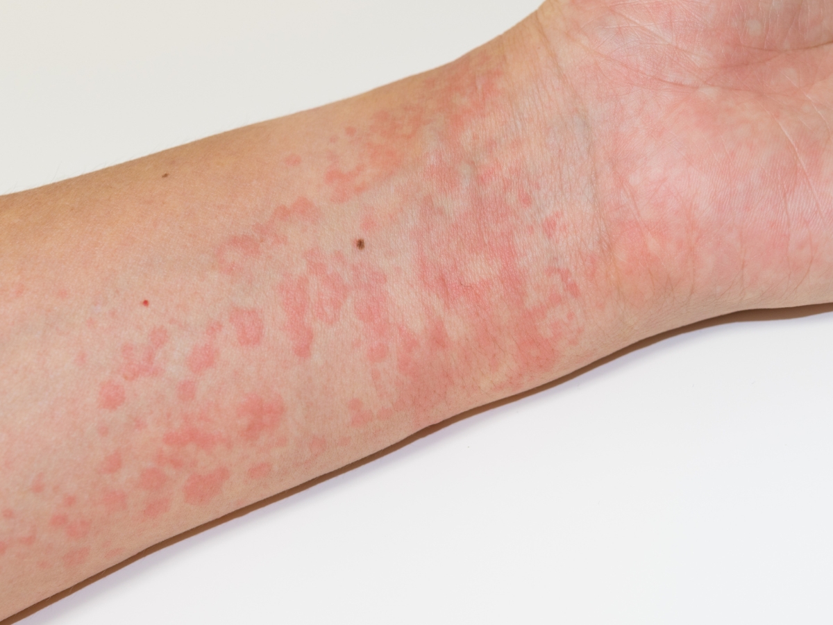 慢性蕁麻疹とは、皮膚に赤みやかゆみを伴う膨疹(ぼうしん)が繰り返し現れ、6週間以上続く状態をいいます。かゆみを伴い、発疹が数時間で消えるのが特徴ですが、次々に新しい発疹が出て、慢性化すると生活の質(QOL)を大きく下げてしまいます。